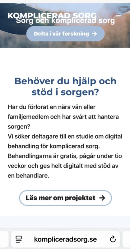 Info och anmälan till forskningsstudien om komplicerad sorg: https://kompliceradsorg.se
