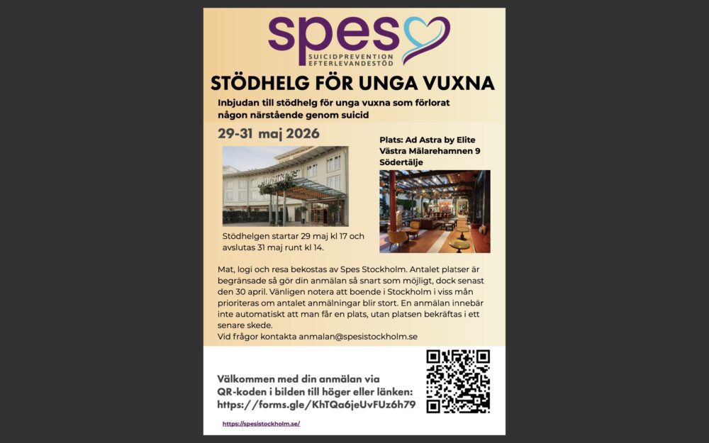 * Spes stödlinje för efterlevande: 020 -18 18 00 alla dagar 19–22